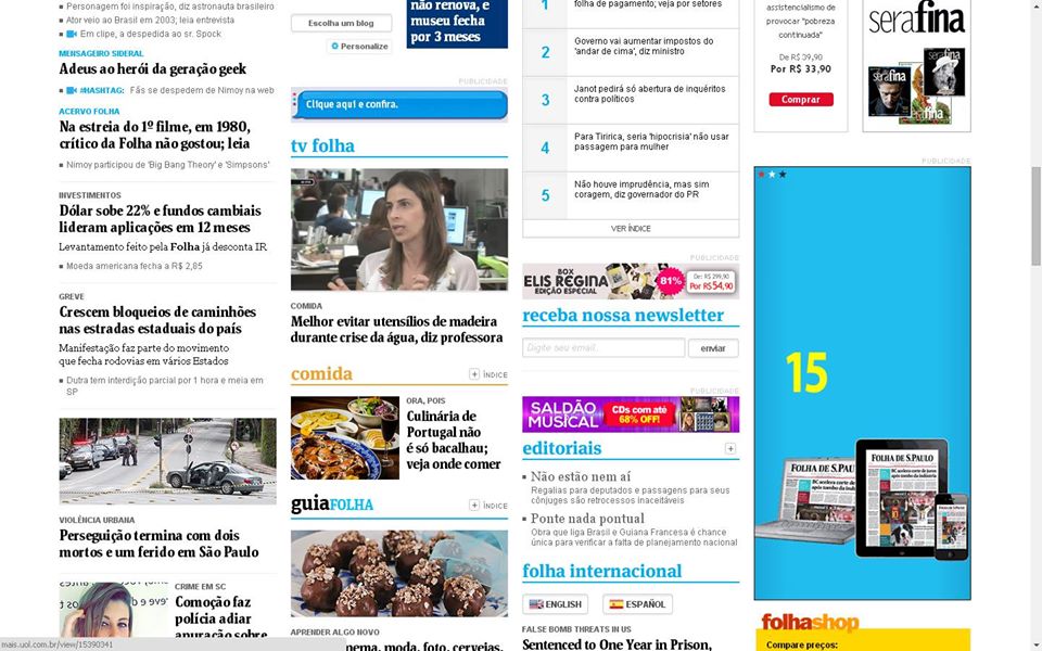 Entrevista publicada em 2015 sobre os impactos da falta de água na segurança alimentar dos restaurantes em São Paulo